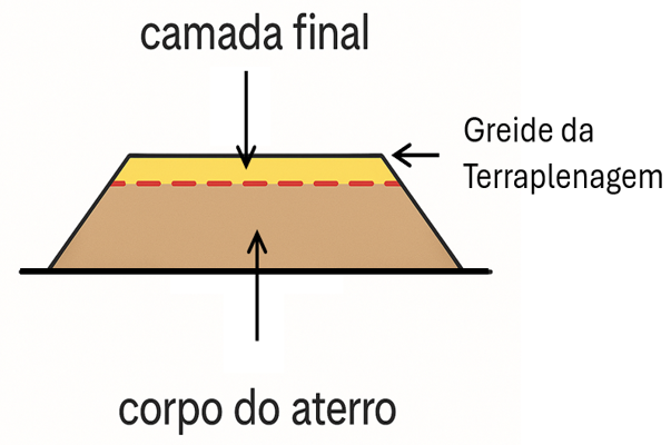 O corpo do aterro pode ser executado em camadas sucessivas de até 30 cm de espessura compactada. Enquanto que a camada final deve ser executada em camadas sucessivas de até 20cm de espessura compactada.