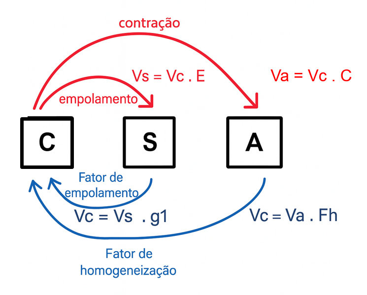 Em razão dos índices físicos dos solos, os estados natural, solto e compactado apresentam diferentes volumes, a depender da incorporação de vazios ou expulsão de ar.