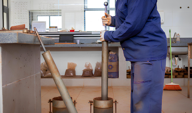Assim que o cilindro fragmentar, recolhem-se os pedaços imediatamente para pesagem e secagem em estufa para determinação da respectiva umidade.