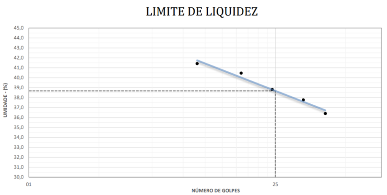 O LL é a umidade correspondente a 25 golpes na reta traçada.